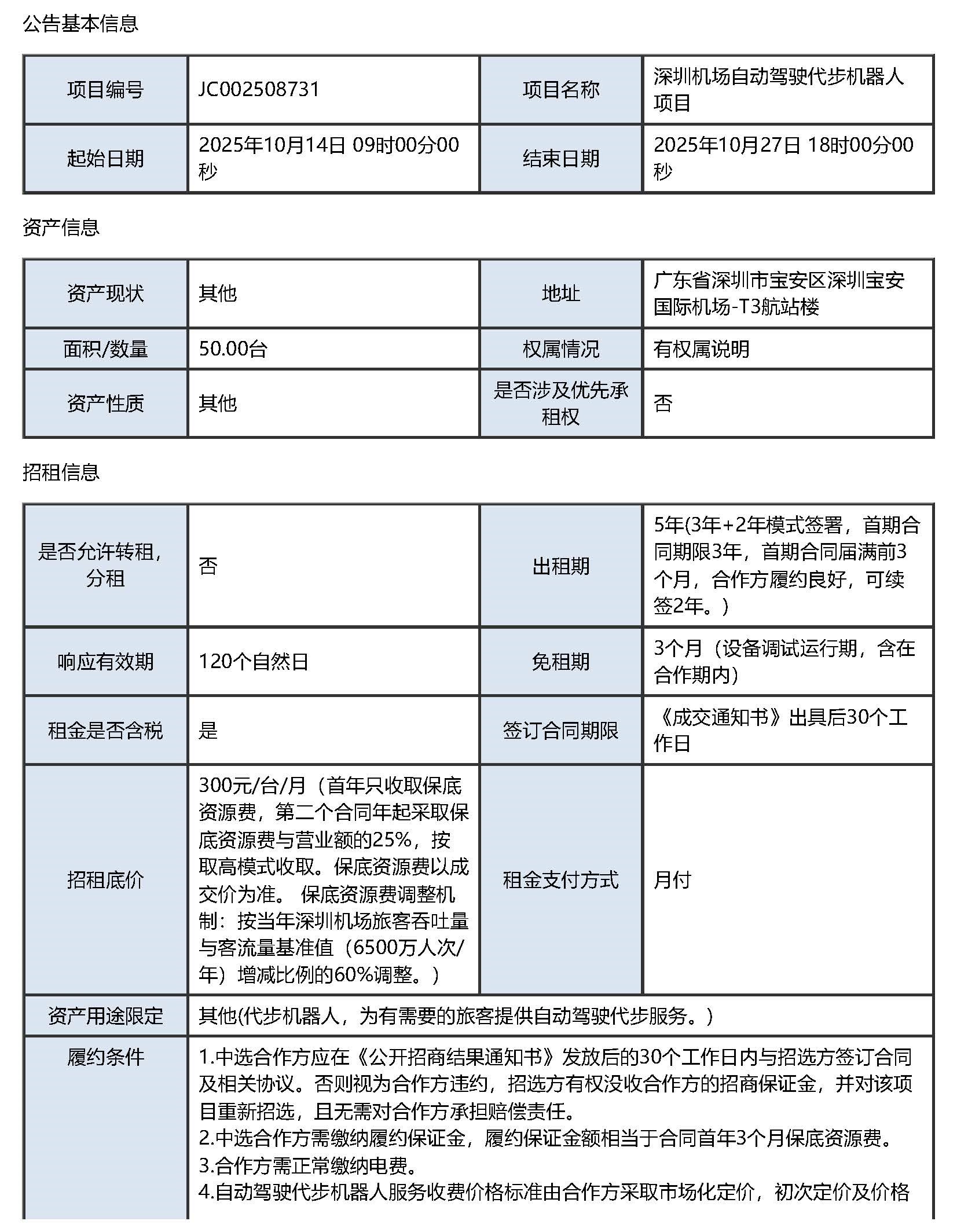 深圳机场自动驾驶代步机器人项目招商信息公告